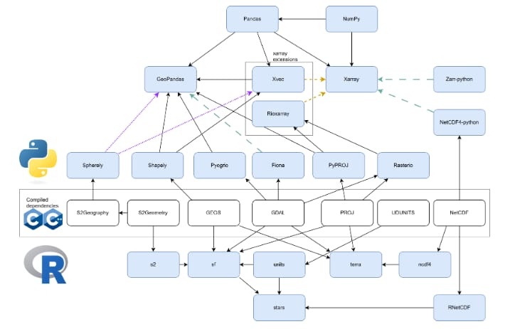 Recent workshops brought together several developers, educators and users of software packages extending popular languages for spatial data handling, with a primary focus on R, Python and Julia. Common challenges discussed included handling of spatial or spatio-temporal support, geodetic coordinates