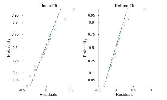You can reduce outlier effects in linear regression models by using robust linear regression. This page defines robust regression, shows how to use it to fit a linear model, and compares the results to a standard fit…