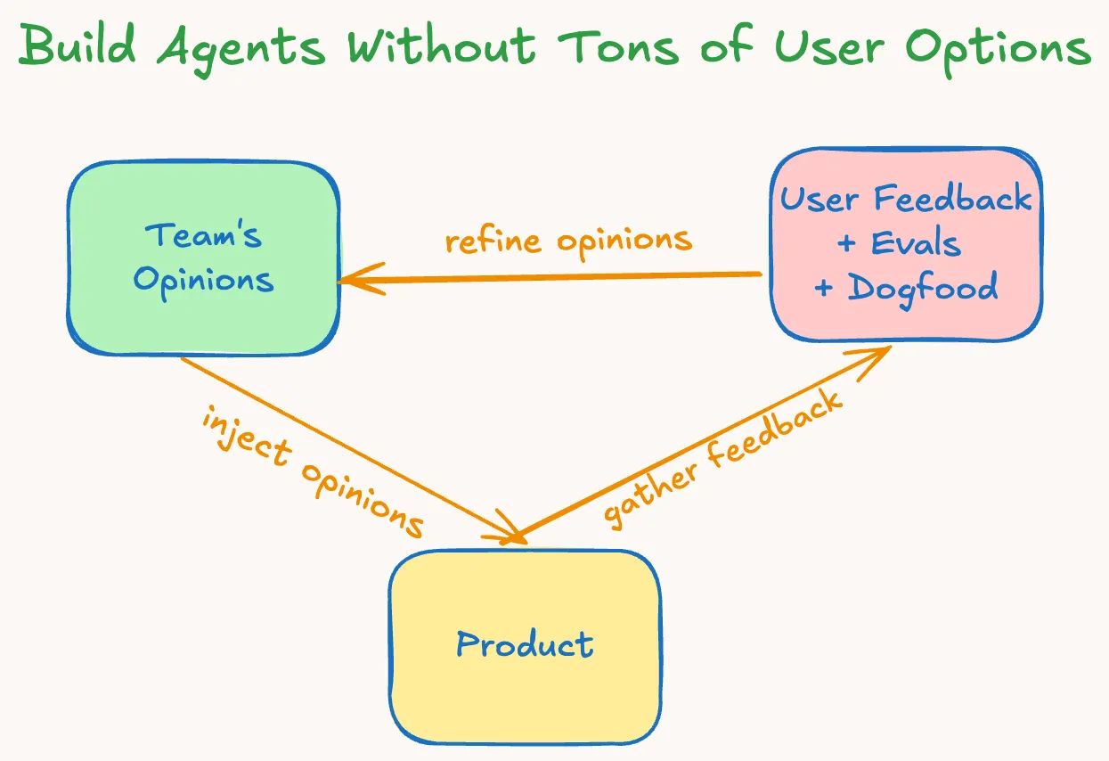 The best agent products are the most opinionated. The goal in agent products is to give users a delightful experience. A good baseline for agents is that everything works reliably without tweaking too many settings. Good product design is the result of creators distilling their vision into an intuitive interface that just works.