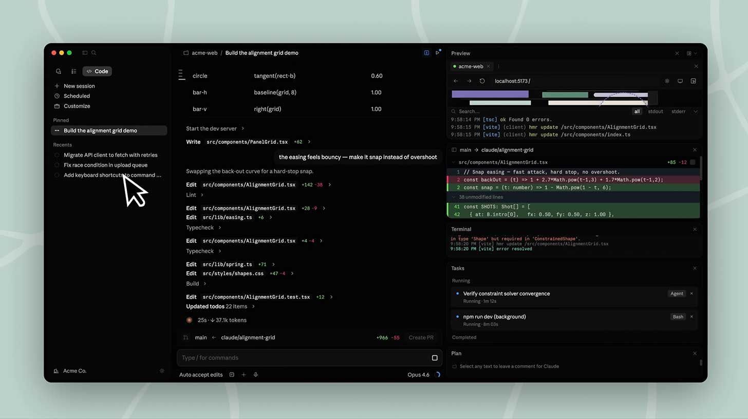 Anthropic introduced a redesign to Claude Code's desktop app built around the reality that devs now run multiple AI sessions at once, adding a sidebar for managing them, new drag-and-drop panes, and an integrated editor and terminal. A new sidebar keeps all live and recent sessions in view, with filters by status or project and the ability to auto-archive once a pull request is closed or merged.
