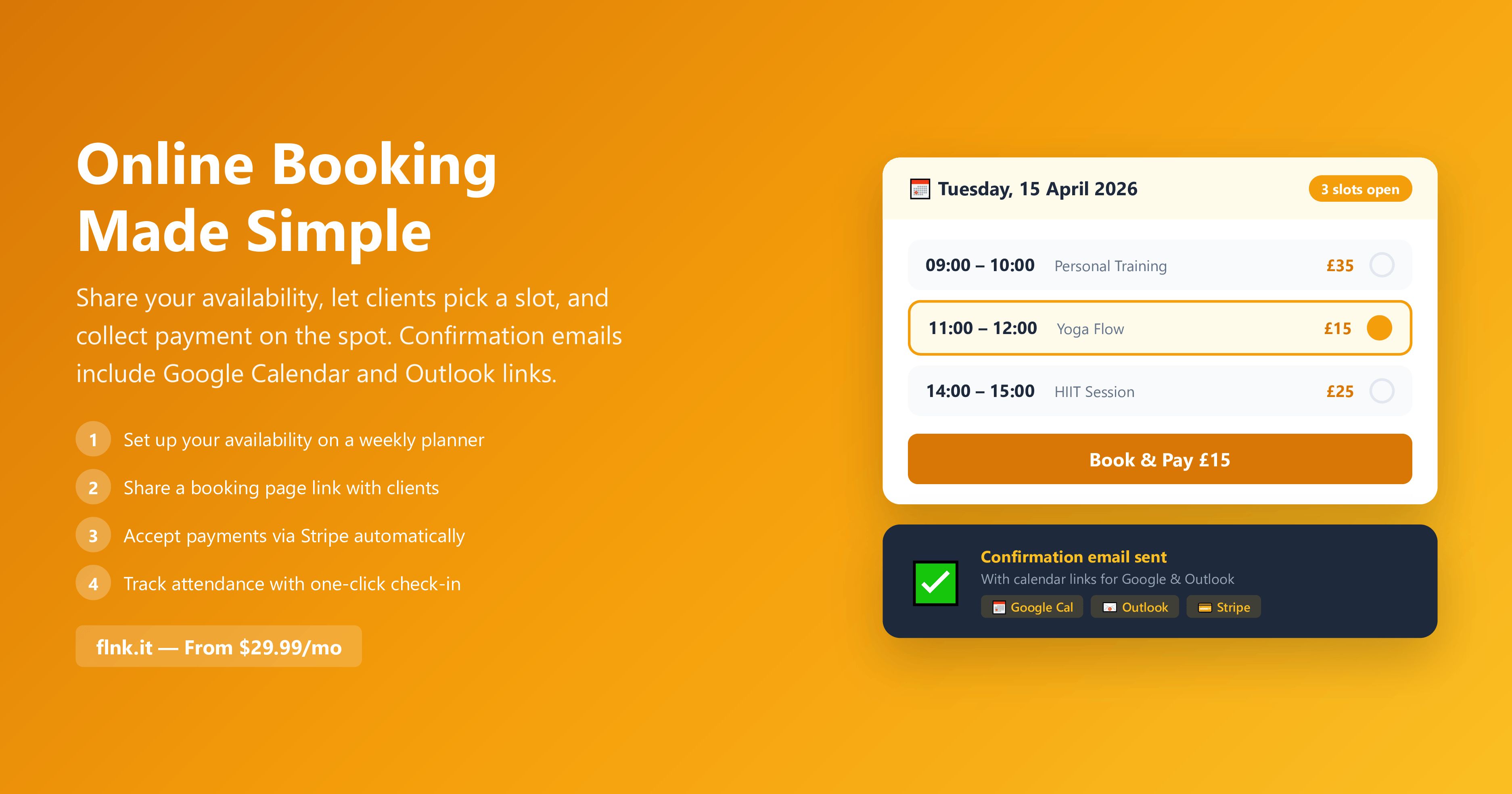Share your booking link, accept appointments, and manage your schedule all in one place. Automate confirmations and reminders for free or paid events.