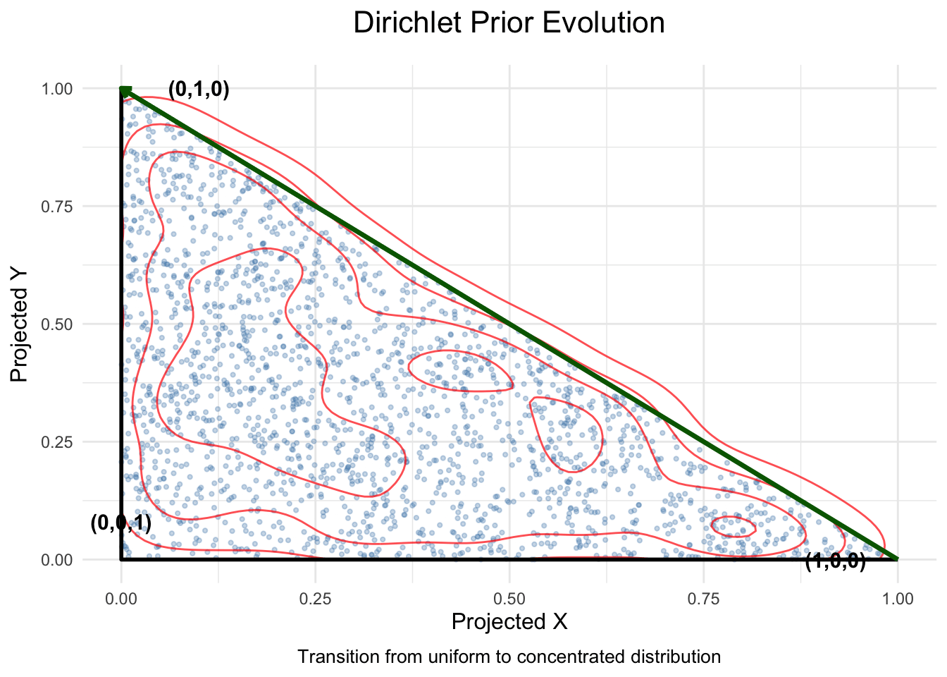 In this post, I explore some properties of the Dirichlet distribution and illustrate the behavior of the symmetric Dirilichet distribution as alpha, the concentration parameter, varies. Understanding this behavior may be helpful in constructing an informative prior for the multinomial distributionā¦